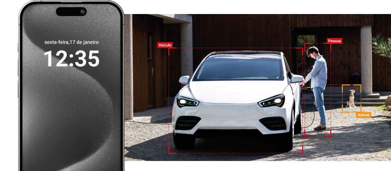 Proteção avançada de alta precisão na identificação de humanos e veículos, ignorando movimentos de animais de estimação e elementos naturais. Tecnologia inteligente de análise mais precisa e relevante, de rápida adaptação e aprendizagem dos eventos do seu espaço.