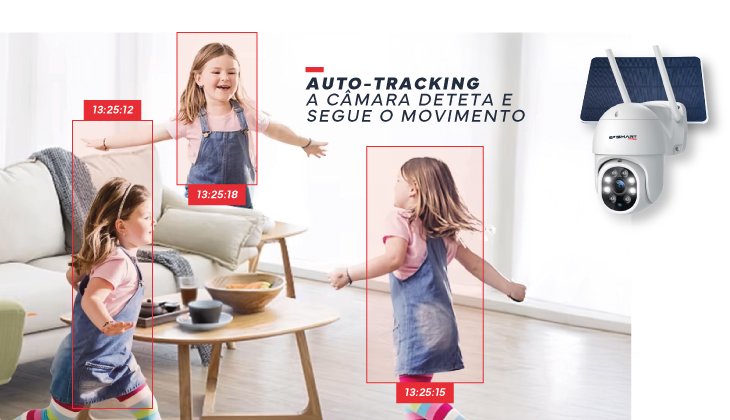 Segue automaticamente cada movimento, através de auto-tracking garantindo que nada lhe escapa. Adaptando-se em tempo real ao alvo, mantém a vigilância ativa e precisa, sem necessidade de ajustes manuais.