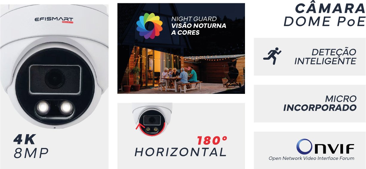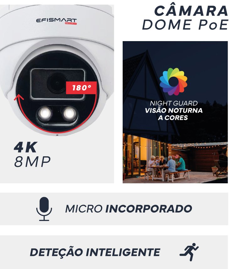 Câmara Vigilância POE Dome 8MP C/Visão Nocturna