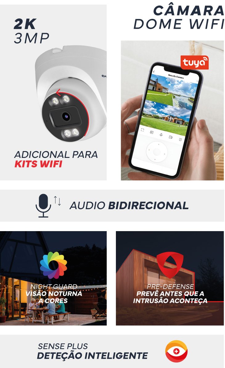 A câmara envia uma notificação imediata sempre que detectar qualquer movimento suspeito, acompanhada de uma imagem em tempo real. Isso permite uma reação rápida, sem perder tempo. Pode saber o que está a acontecer no momento e tomar decisões rápidas para garantir a segurança de sua casa ou negócio.