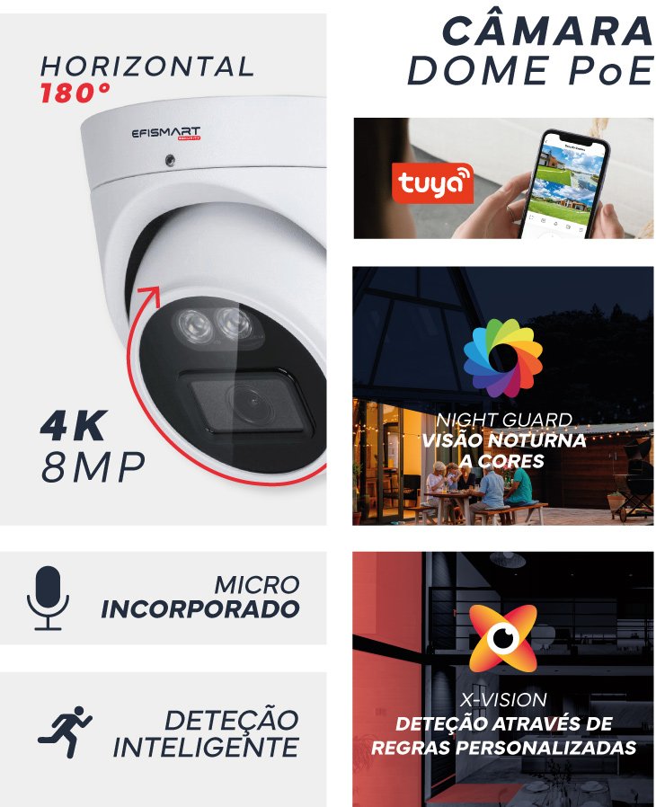 Câmara Vigilância POE Dome 4K C/Visão Nocturna
