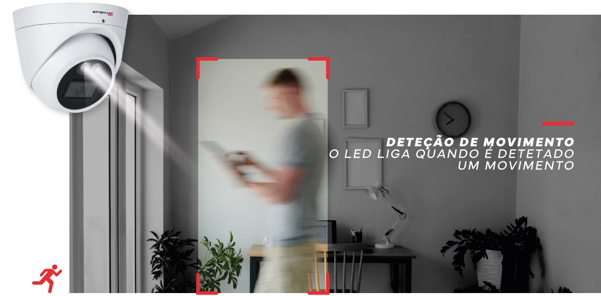 A câmara detecta qualquer movimento, iluminando automaticamente a área para garantir vigilância constante e proteção imediata, prevenindo potenciais ameaças e dissuadindo ações indesejadas.