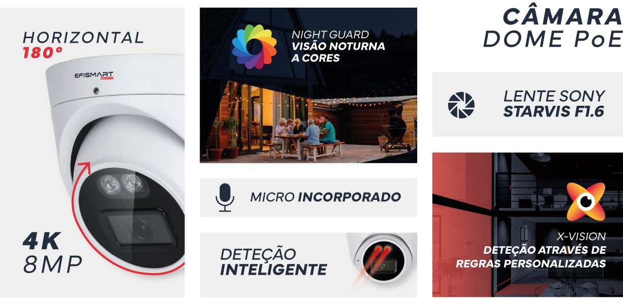 Segurança em Alta Definição 4K Com uma resolução de 4K e 8MP, equipada com uma lente Sony, cada detalhe ganha vida com a máxima precisão. Veja tudo com uma definição superior e sem perder nenhum pormenor.