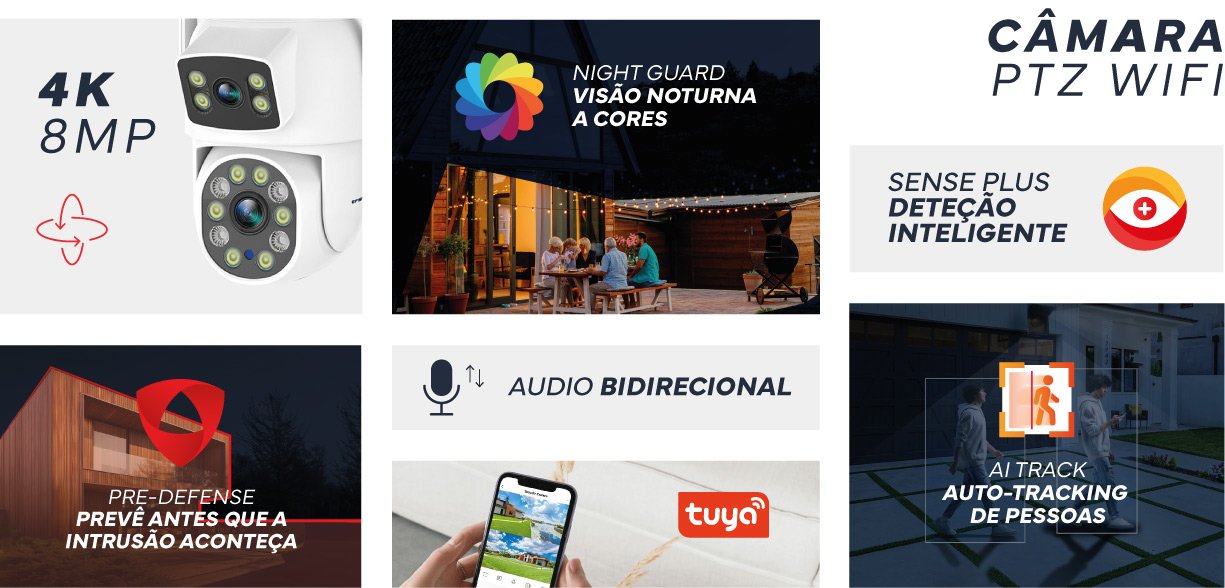 Câmara Vigilância WIFI PTZ 8MP Dupla Lente | Tuya