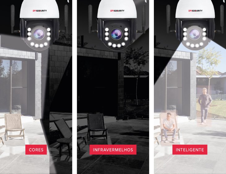 Com LEDs integrados, a câmara adiciona iluminação ao ambiente, garantindo imagens nítidas e detalhadas, melhorando a qualidade da captação.