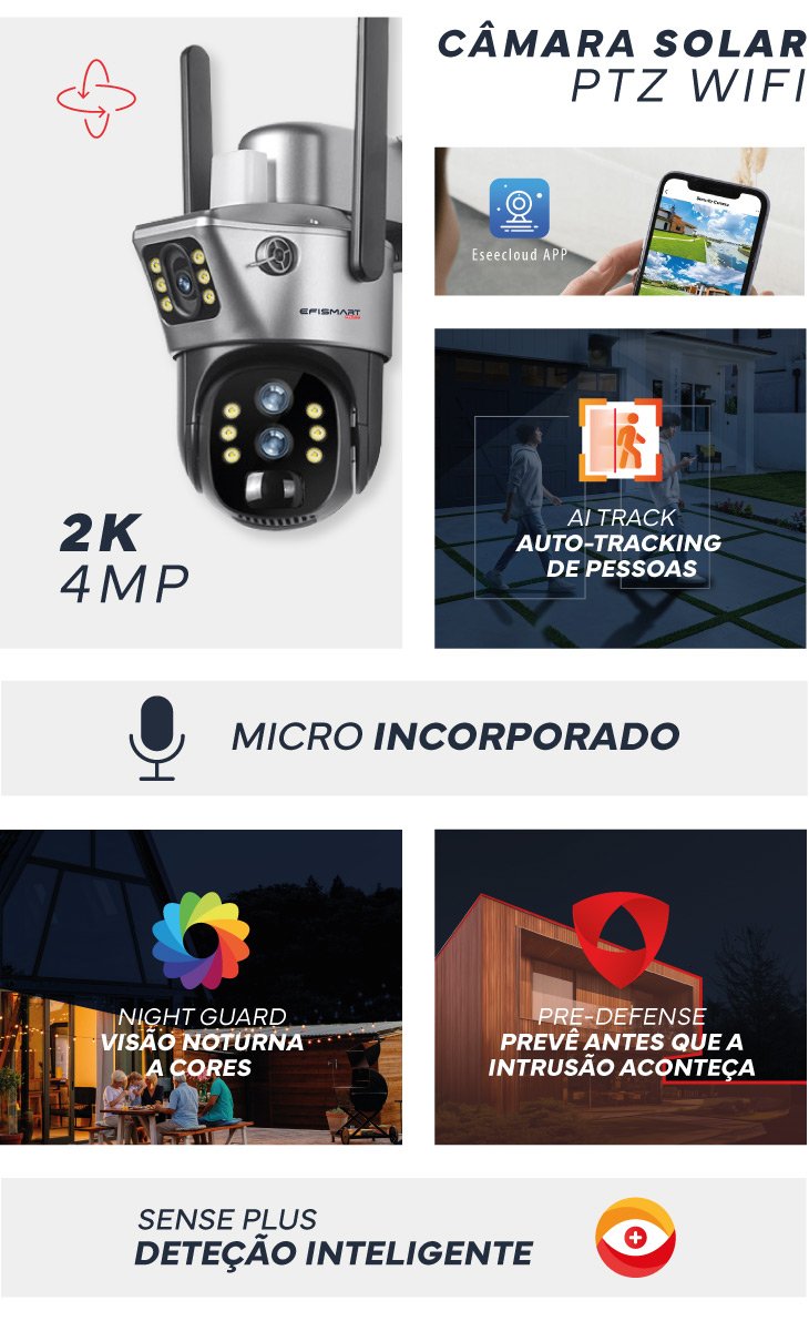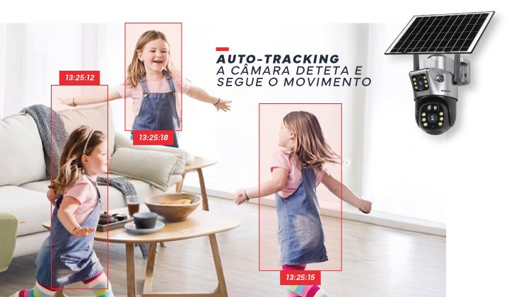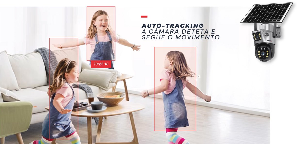 Segue automaticamente cada movimento, através de auto-tracking garantindo que nada lhe escapa. Adaptando-se em tempo real ao alvo, mantém a vigilância ativa e precisa, sem necessidade de ajustes manuais.