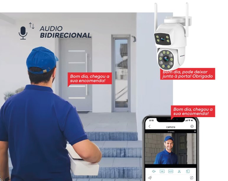 BidirecionalCom o microfone e o alto-falante integrados, pode comunicar facilmente com quem está no seu espaço, ouvir o que se passa e falar em tempo real, onde quer que esteja.