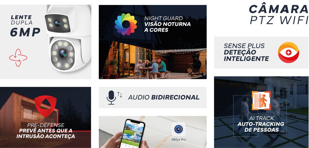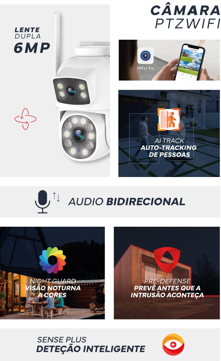 Câmara Vigilância WIFI PTZ 6MP Dupla Lente | XMEye Pro