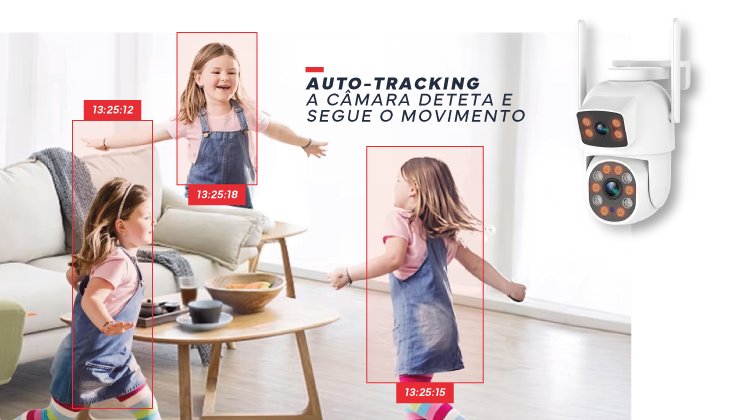 Segue automaticamente cada movimento, através de auto-tracking garantindo que nada lhe escapa. Adaptando-se em tempo real ao alvo, mantém a vigilância ativa e precisa, sem necessidade de ajustes manuais.
