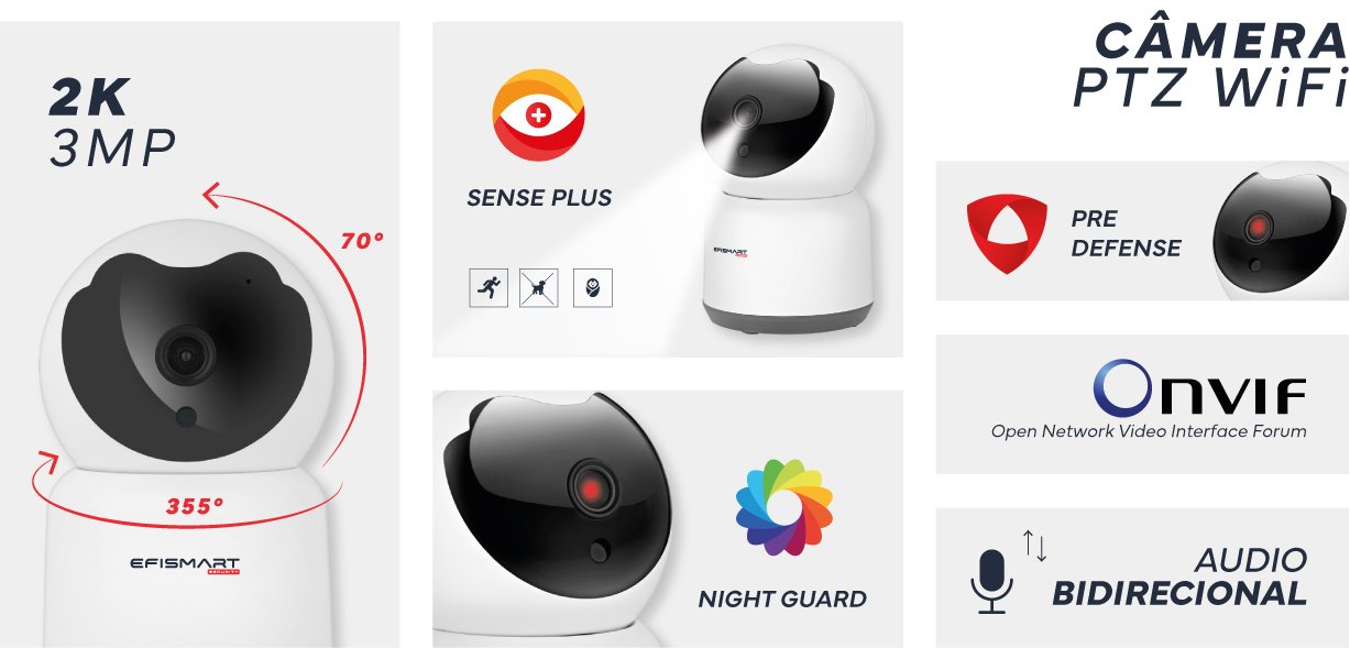 Gravações acionadas por movimento ou programadas, armazenadas em Gravadores NVR. Com compressão H.264/H.265, pode guardar vídeos de alta qualidade de forma eficiente. Se precisar de mais espaço ou de gerir várias câmaras, basta conectar a um sistema Efismart compatível para um armazenamento prolongado e de fácil controlo.