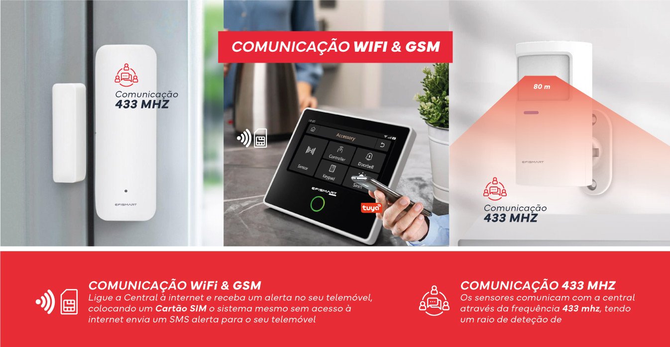 Proteja o seu espaço com a Central de Alarme GSM Smart WIFI proporcionando um sistema completo de deteção de intrusão, oferecendo integração de sensores e sirenes para resposta imediata a ameaças potenciais.