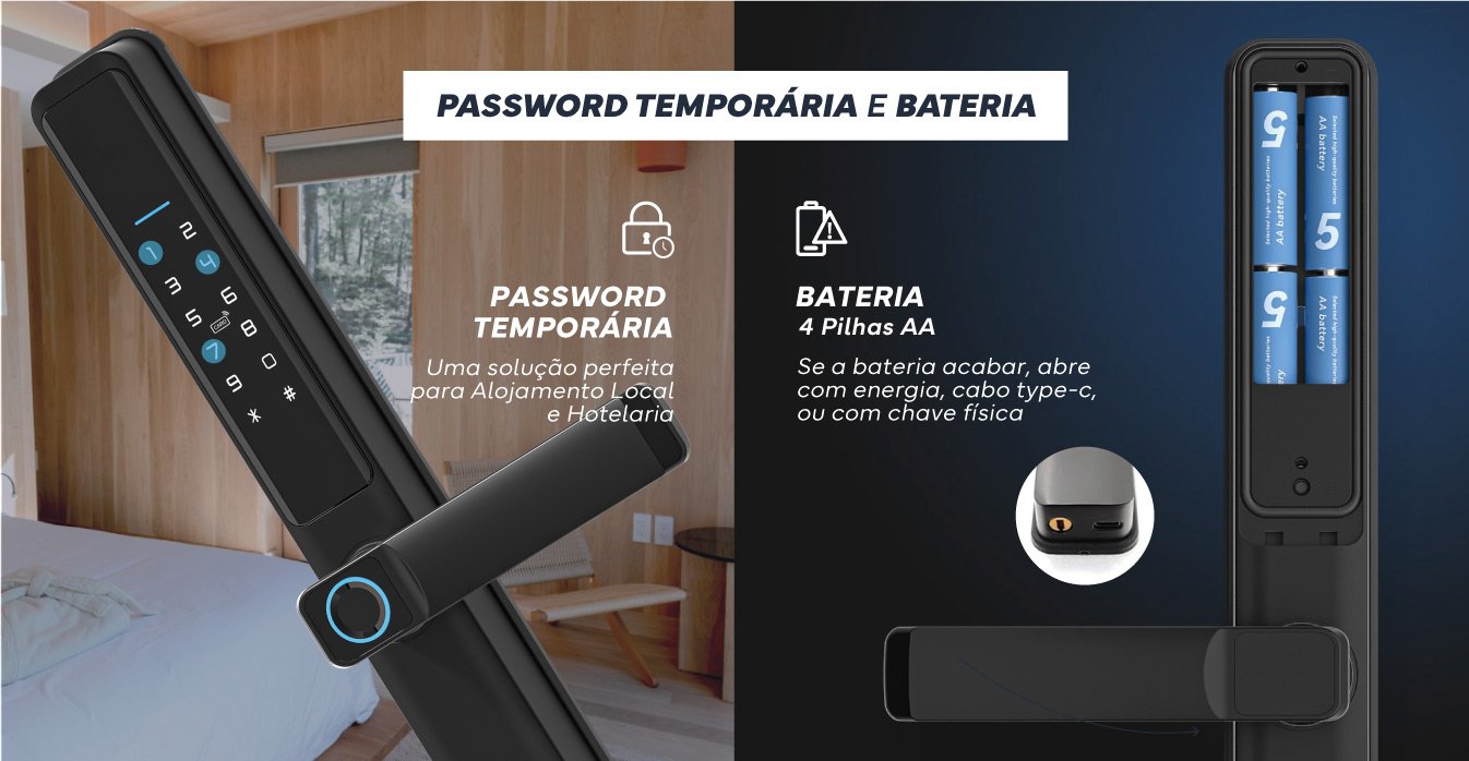 Fechadura Inteligente C/ Impressão Digital / Cartão / Teclado – 55mm