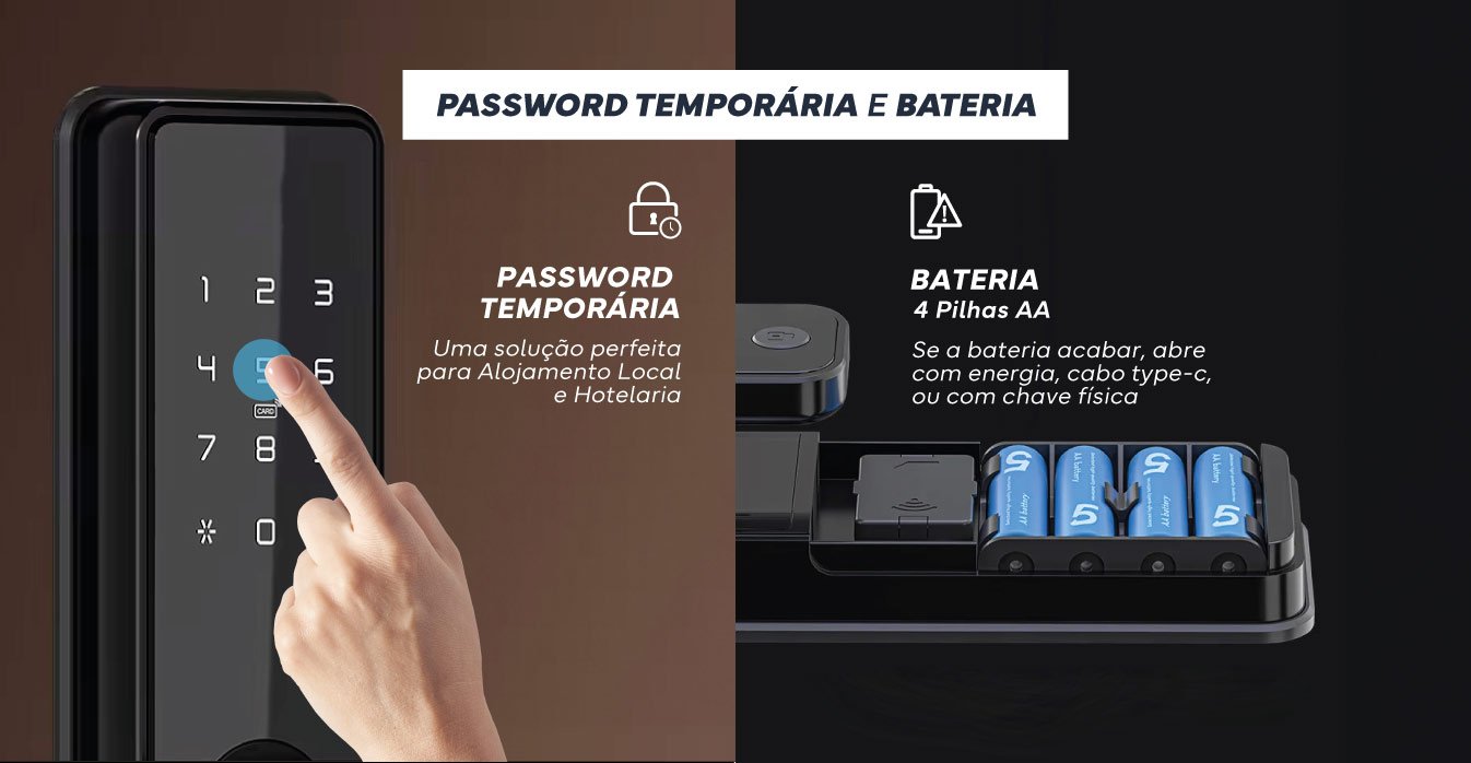 | Métodos de Desbloqueio | APP, cartão, chave, Impressão Digital |