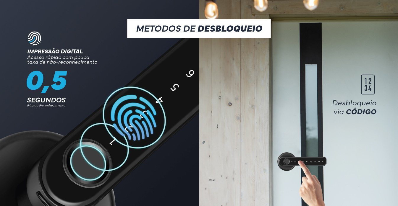 A Fechadura Inteligente C/ Impressão Digital Teclado Chave é a combinação ideal entre segurança avançada e conveniência. Poderá gerir os acessos em tempo real e consultar os históricos de acesso, garantindo praticidade e tranquilidade para o seu dia a dia.Através da Impressão Digital, Fechadura Inteligente C/ Impressão Digital Teclado Chave torna-se uma opção altamente segura e personalizada. Utilizando tecnologia biometria, permite acessos através da verificação única das impressões digitais dos utilizadores, proporcionando uma autenticação de acessos rápida e confiável