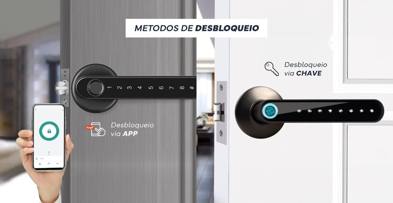 Fechadura Inteligente C/ Impressão Digital / Senha / Cartão IC / Chave / APP Tuya 35-60mm
