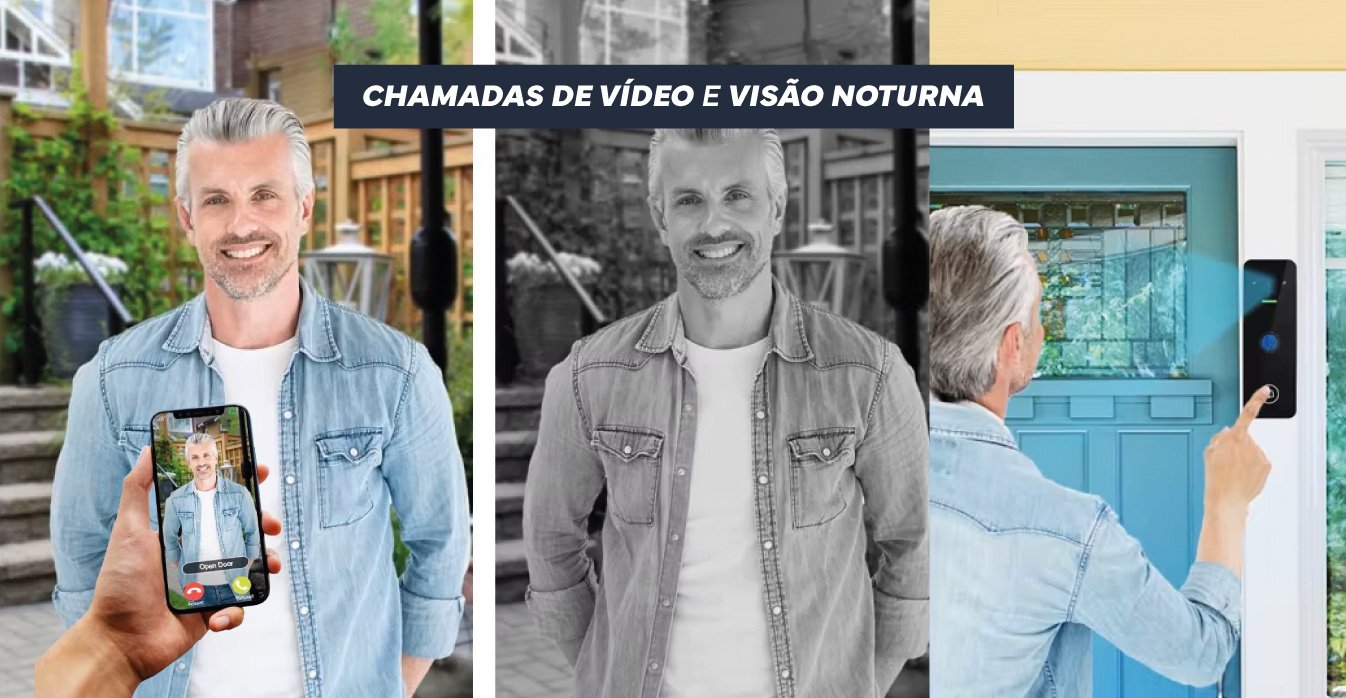 Fechadura Inteligente C/Câmara 0,3MP C/ Impr. Digital / Cartão / APP – 35-70mm
