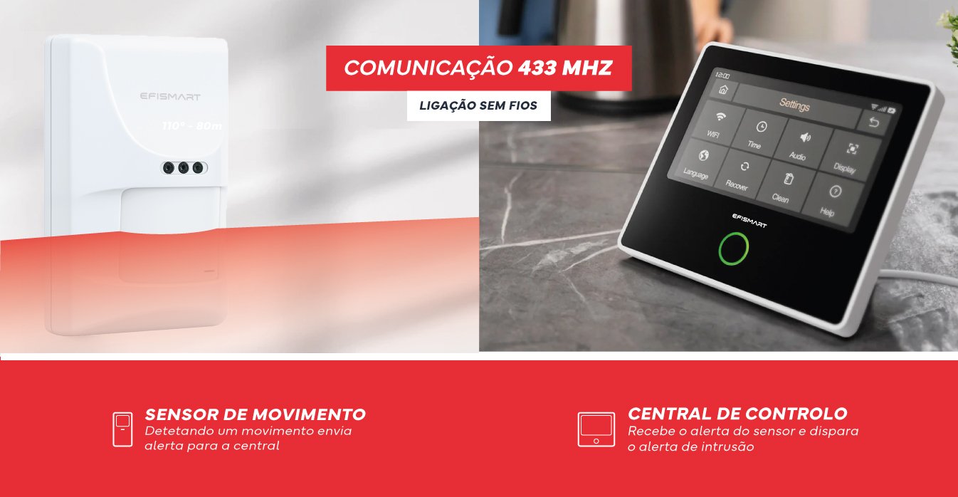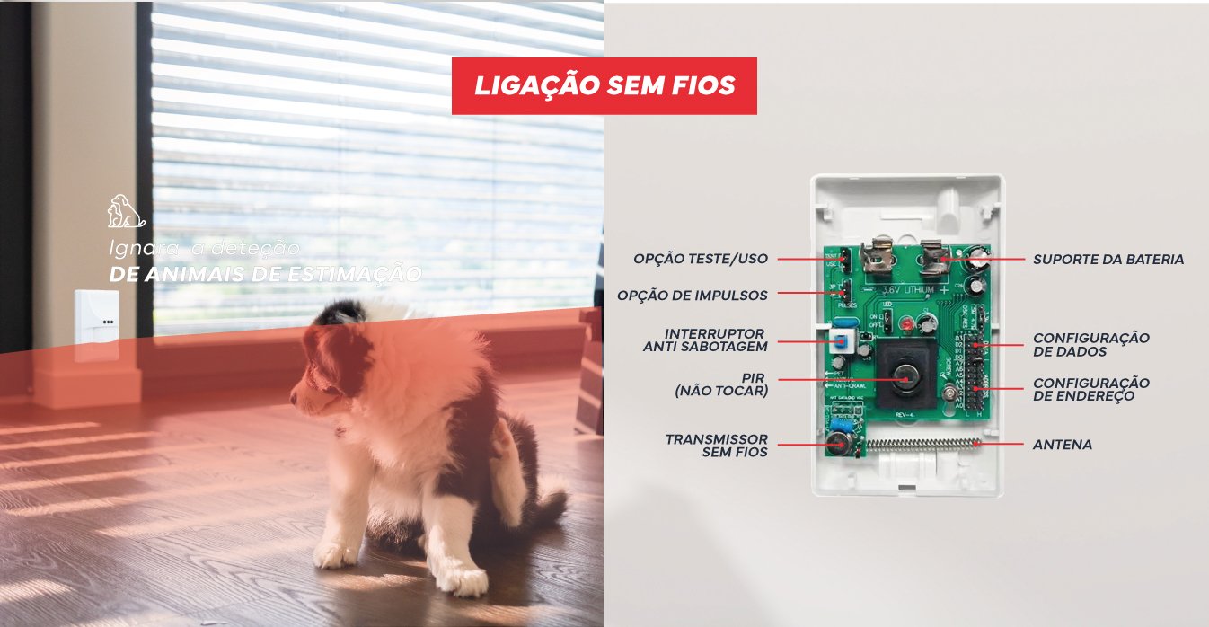 - Baixo consumo de energia: <10mA (em espera), 17mA (alarme).