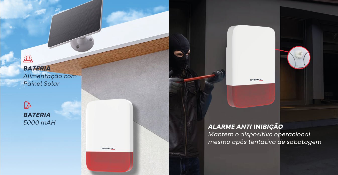 A Sirene de Incêndio Bateria 433MHz C\ Painel Solar emite alertas audíveis em caso de emergência, dissuadindo intrusões e alertando vizinhança e serviços de segurança. Reforça a eficácia do sistema de segurança.