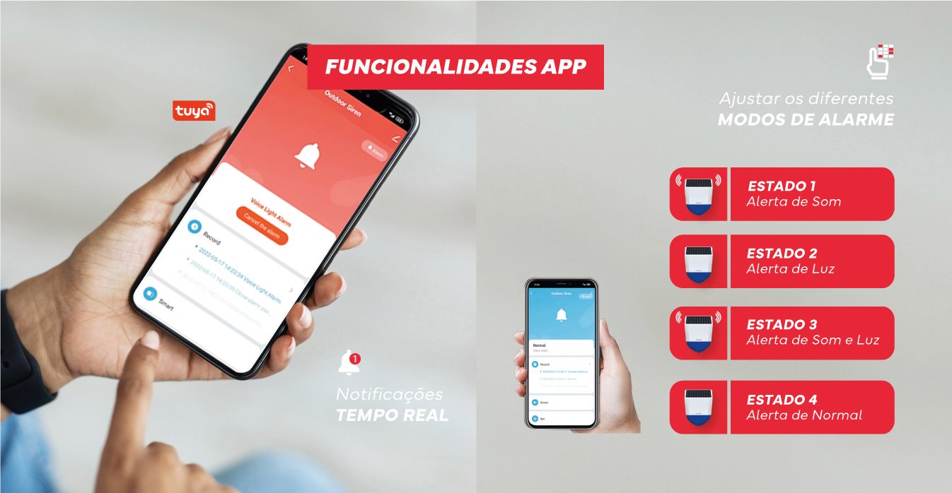 A Sirene Exterior C/Painel Solar WIFI emite alertas audíveis em caso de emergência, dissuadindo intrusões e alertando vizinhança e serviços de segurança. Reforça a eficácia do sistema de segurança.