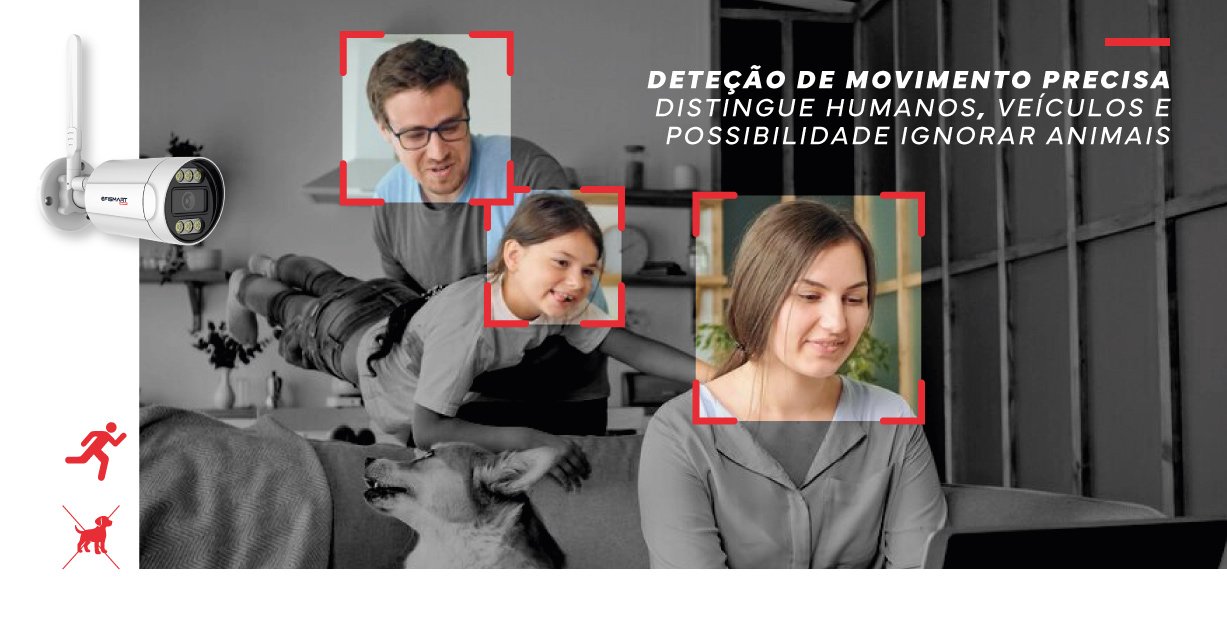 Eleve a sua segurança com deteção de movimento avançada. Identifica pessoas e veículos, ignorando animais e outros elementos naturais, com a opção de excluir os seus animais de estimação, reduzindo até 98% os falsos alarmes.