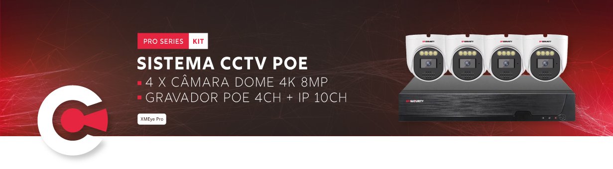 Sistema CCTV POE - 8x Dome 4K C/Detecão AI/Visão Nocturna + Gravador 8CH 4K | XMEye PRO