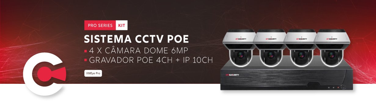 | Gravador | POE 4CH + IP 10CH 4K, XMEye PRO |