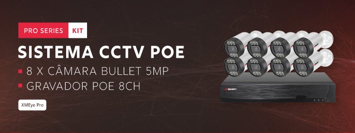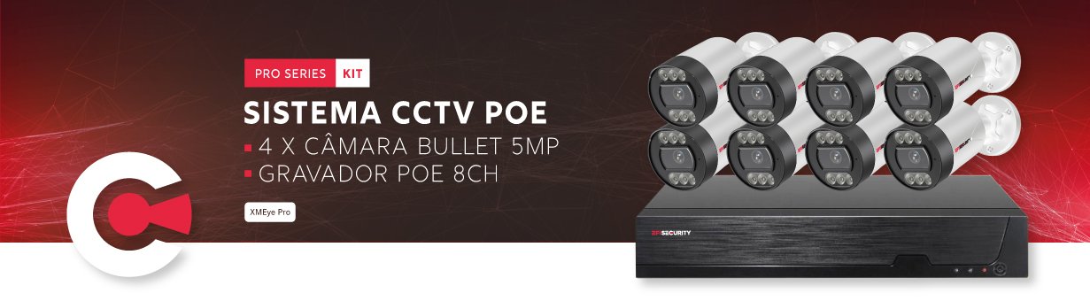 | Gravador | POE 8CH 4K, XMEye PRO |
