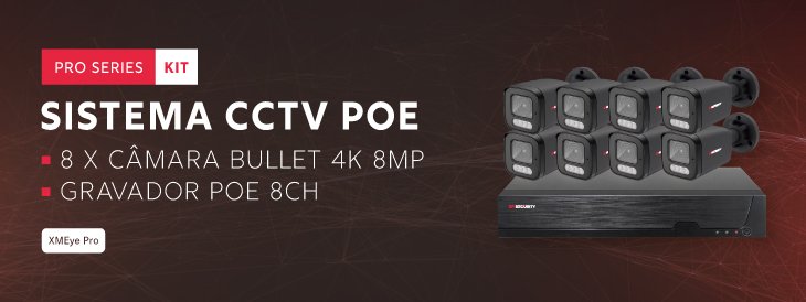 Sistema CCTV POE – 8x Câmara Bullet 4K C/Visão Nocturna/Deteção AI + Gravador 8CH 4K | XMEye PRO | Preto