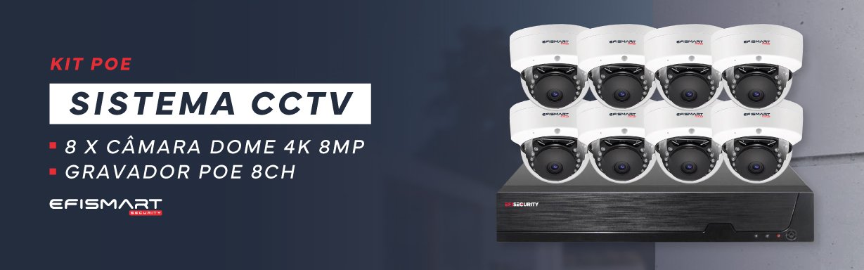 Sistema CCTV POE – 8x Câmara Dome 4K C/Visão Nocturna/X-Vision + Gravador 8CH 4K