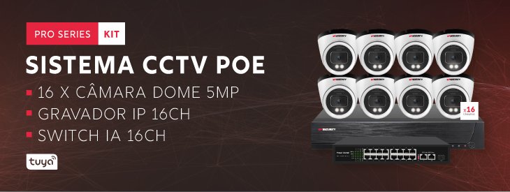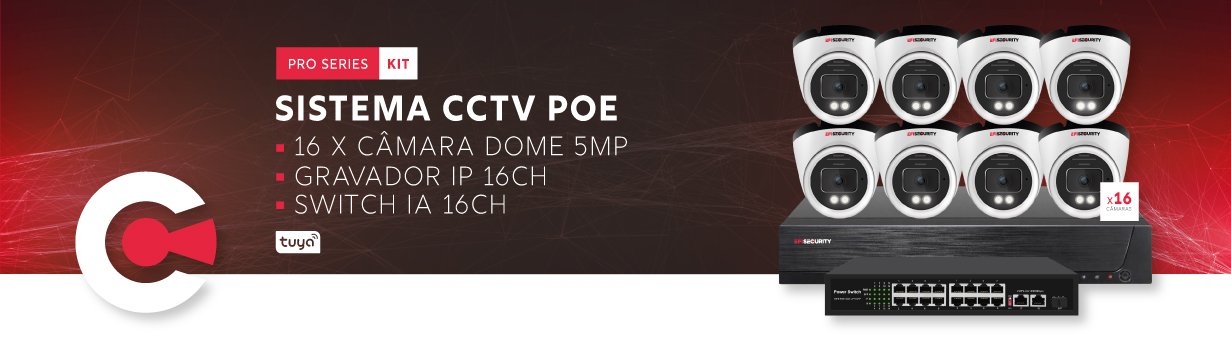 Sistemas CCTV POE – 16x Câmara Dome 5MP C/Sensor AI/Visão Noturna + Gravador 8CH 4K + Switch 16CH | Tuya