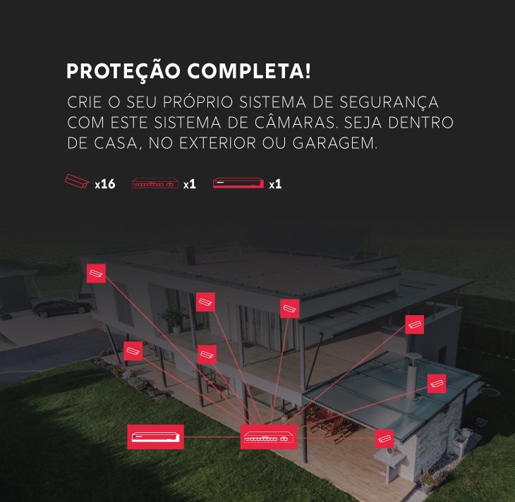 Sistema contém 16 Câmaras + Switch + Gravador + Disco Rígido
