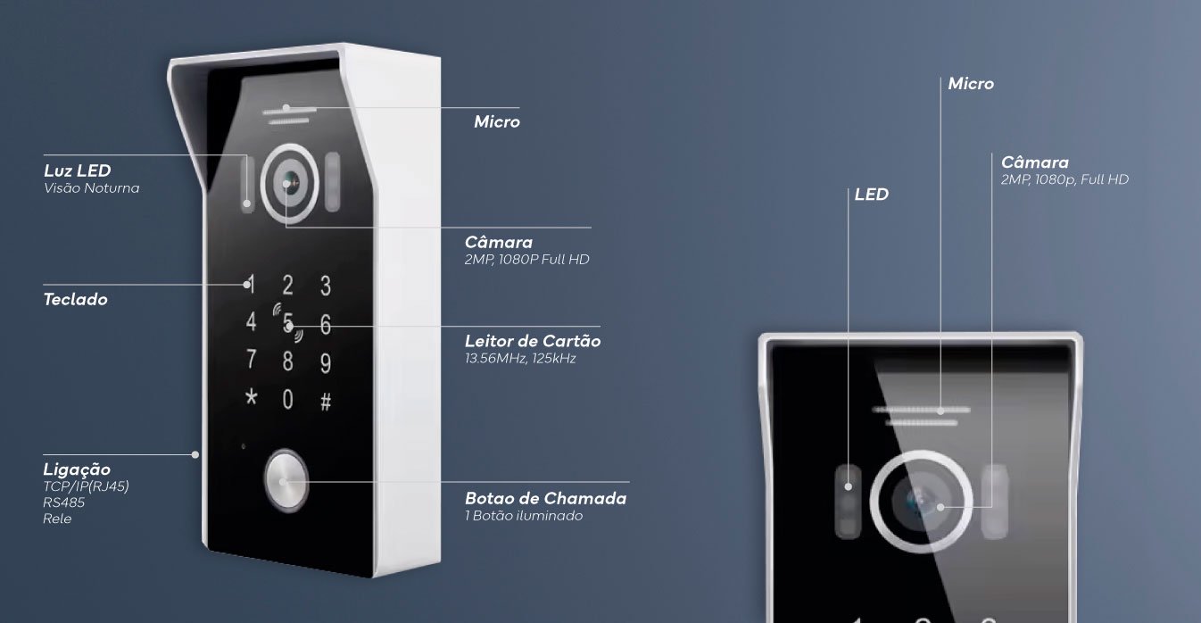Posto Externo 2MP 1 Botão C/Leitor Cartão RFID Cinza